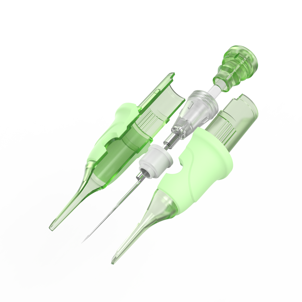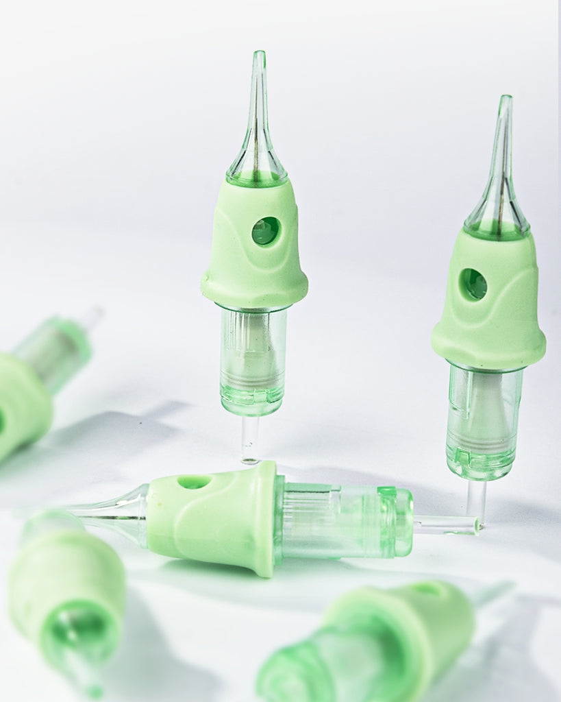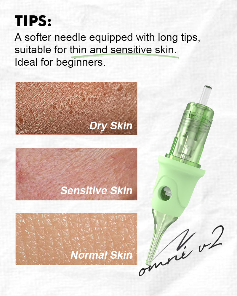 Diseñadas para cejas, labios, delineado y otros trabajos de alta precisión, su taper optimizado minimiza el trauma en la piel mientras mejora la implantación y retención del pigmento. El sistema interno de posicionamiento mantiene la aguja estable para trazos más suaves y resultados más uniformes.